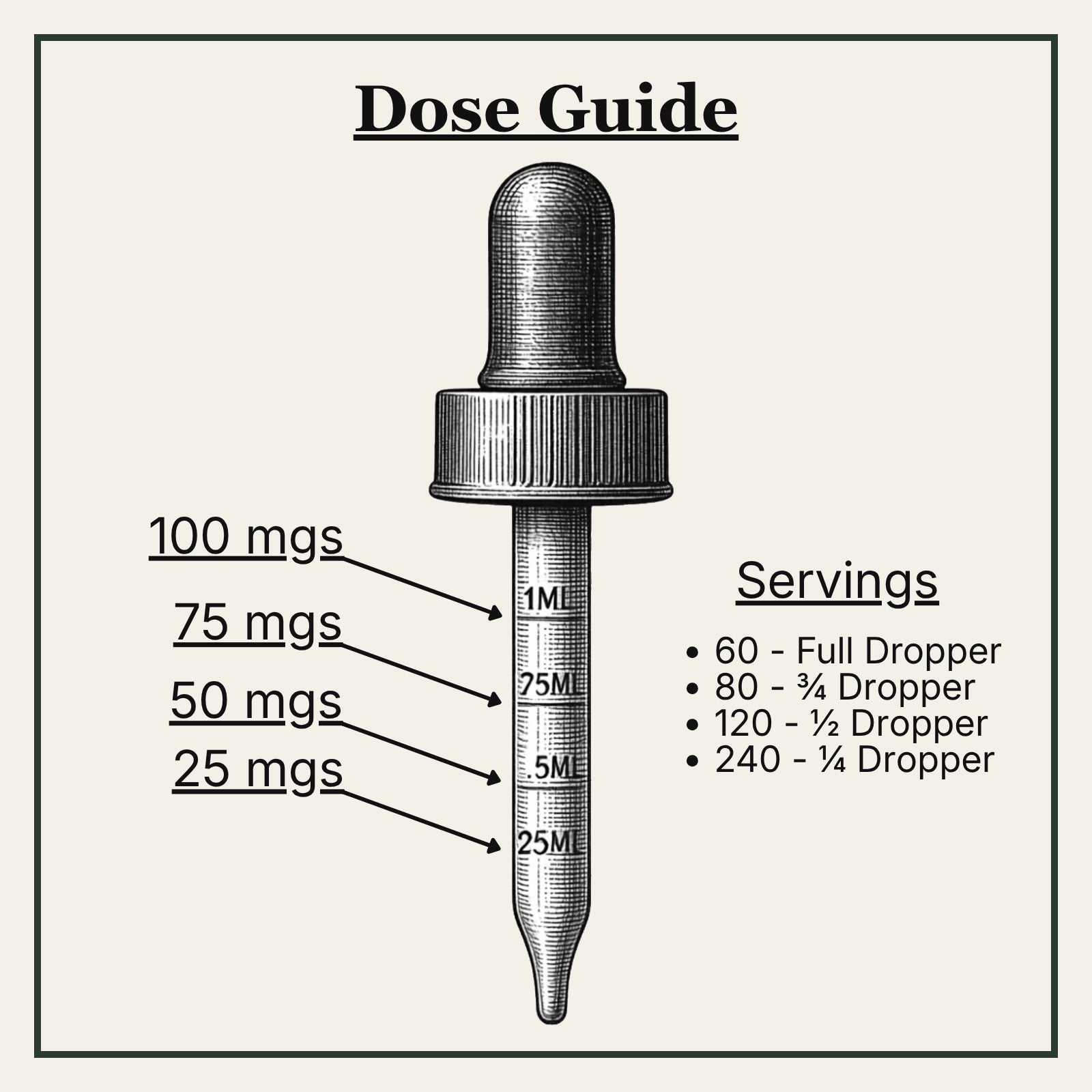 Many people use this tincture during the day for a sense of calm without feeling foggy or slowed down. Others prefer larger servings in the evening as part of their wind-down routine. Can be taken on its own or alongside other non-THC supplements, depending on individual preference.