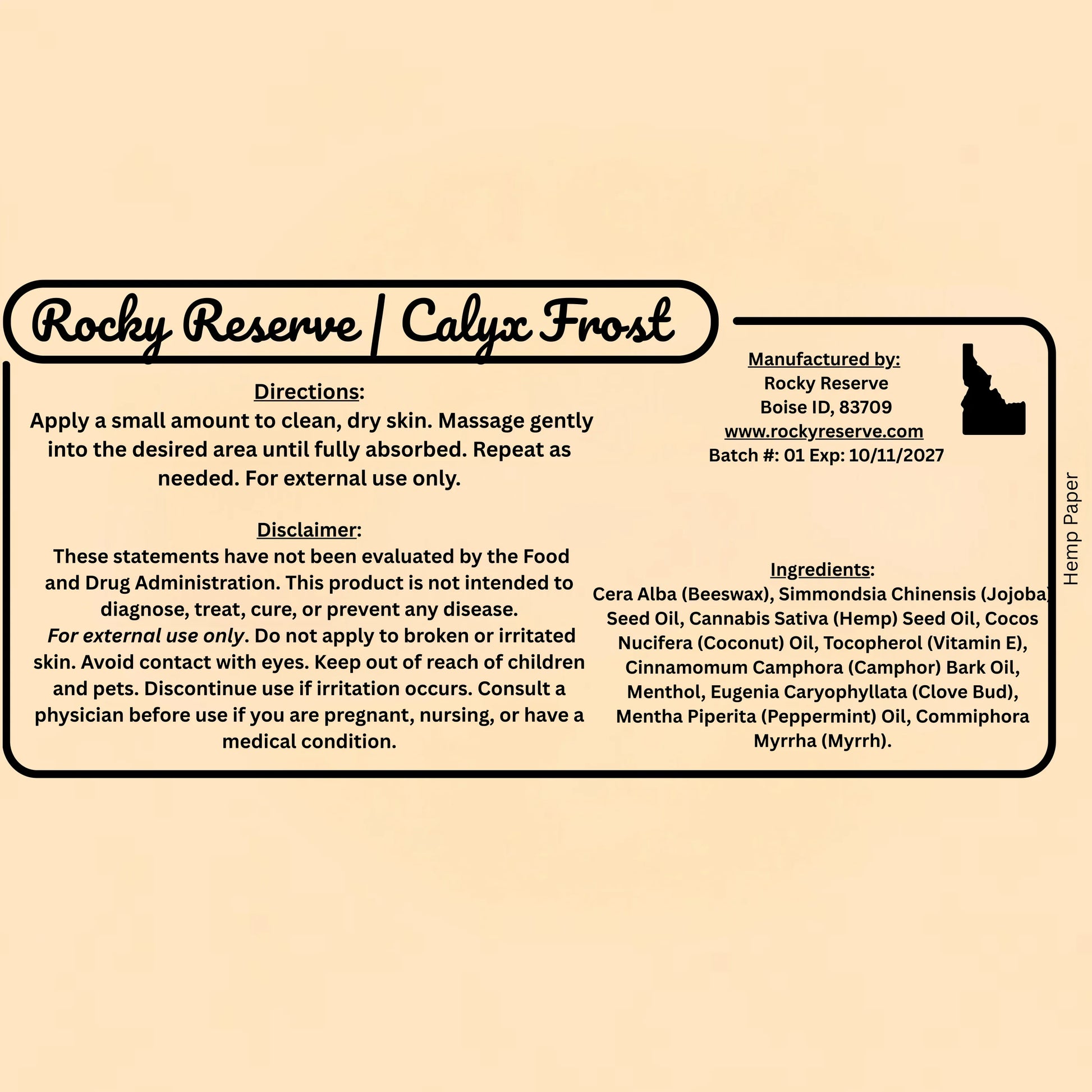 Rocky Reserve - Calyx Frost was developed with three priorities: skin compatibility, cannabinoid potency, and ingredient quality.